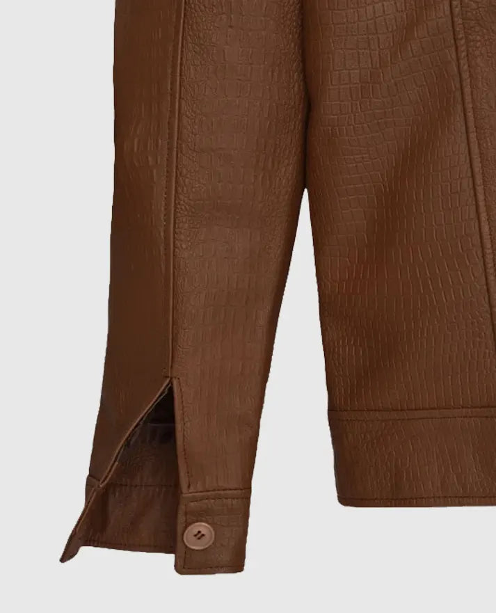 Men's Brown Leather Trucker Jacket